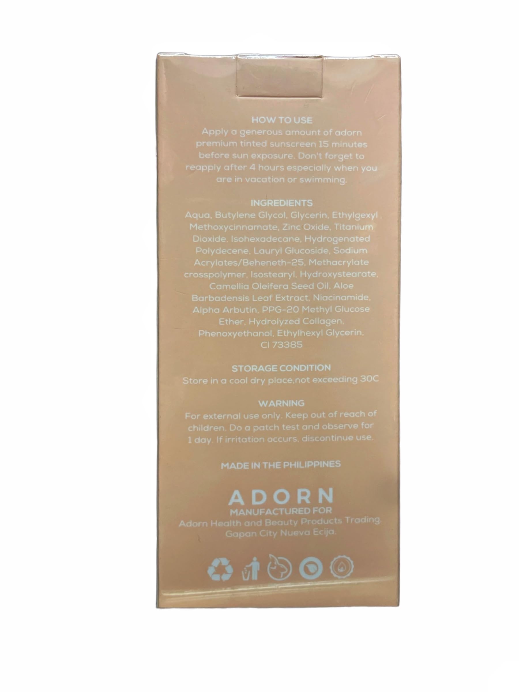 HOW TO USE: Apply a generous amount of adorn premium sun care sunscreen 15 minutes before sun exposure. Don't forget to reapply after 4 hours especially when you are in vacation or swimming.