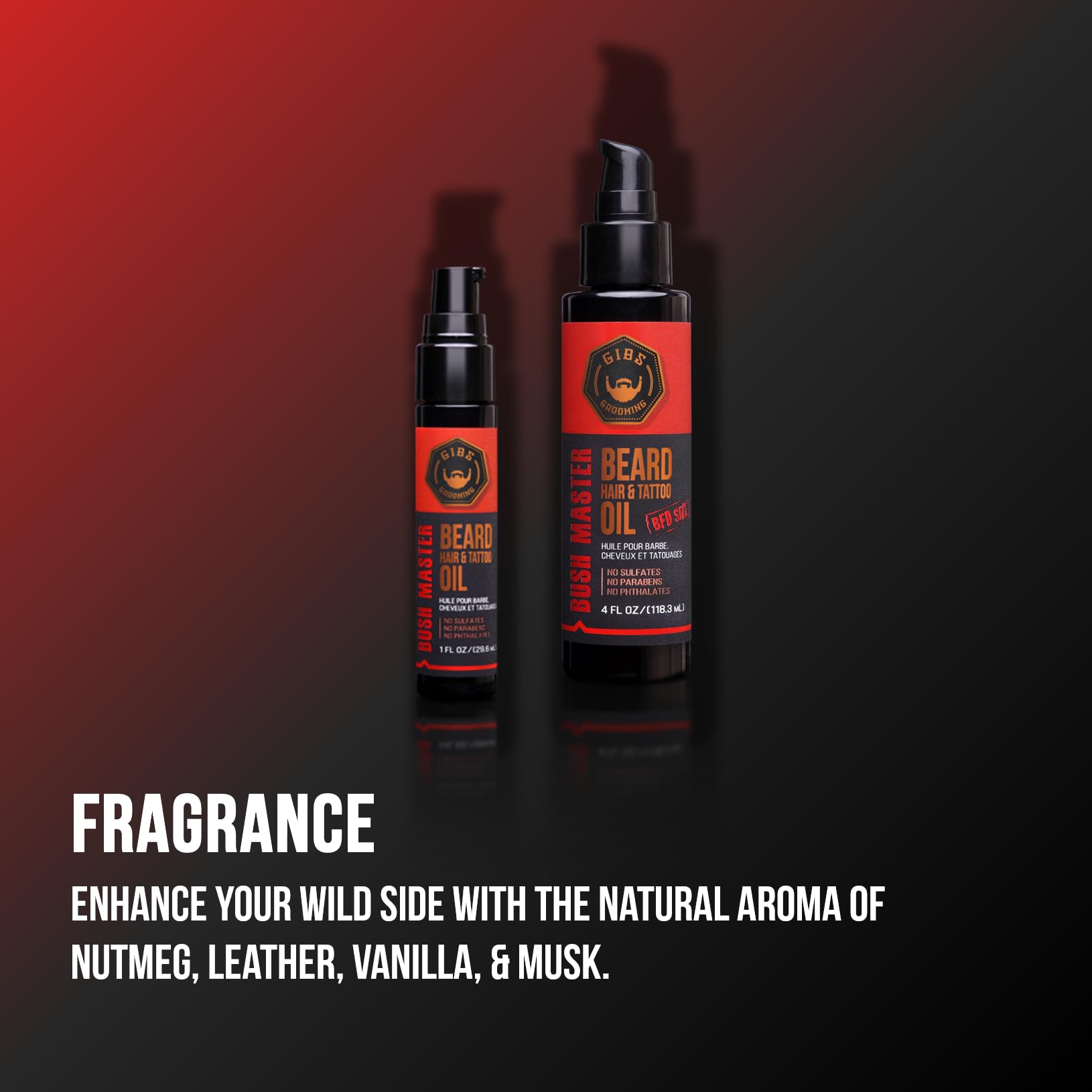GIBS GROOMING Bush Master Beard, Hair & Tattoo Oil- All-Natural with Nutmeg, Leather, Vanilla & Musk Scent- Softens & Strengthens Beard Growth, Moisturizes Skin, 1 Fl Oz (Pack of 1)