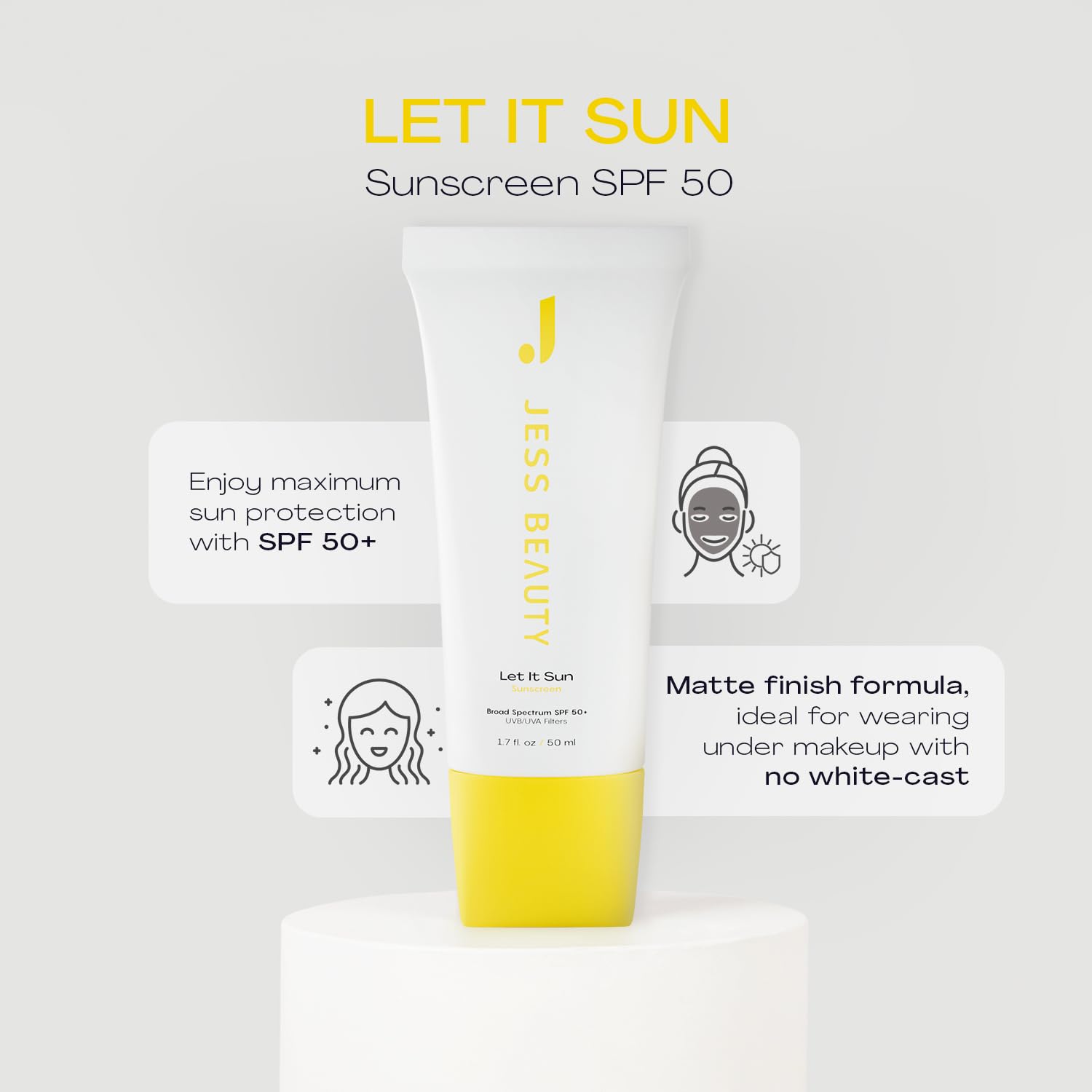 JESS BEAUTY | Let it Sun 50+ Sunscreen Green Tea & Aloe Extract | Skincare Sun Protection 1.7 fl oz