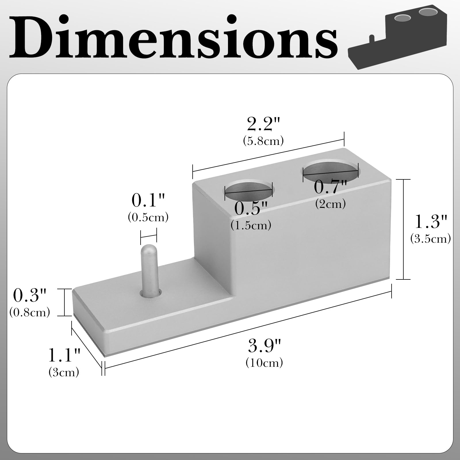 - Razor stand dimensions: 3.9" x 1.1" x 1.3" (10cm x 3cm x 3.5cm), large opening: 0.7" (2cm), small opening: 0.5"(1.5cm), Note: before buying, pay attention to whether the razor aperture is suitable for razor