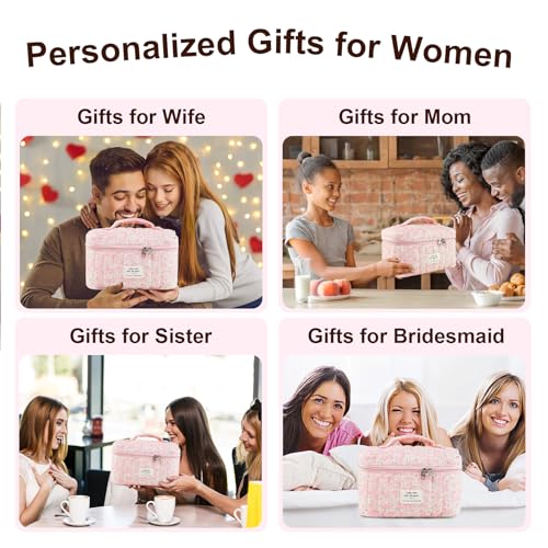 Makeup Bag, Floral Quilted Cosmetic Bag, Large Travel Aesthetic Make up Bag, Cute Coquette Toiletry Bag for Women Girls