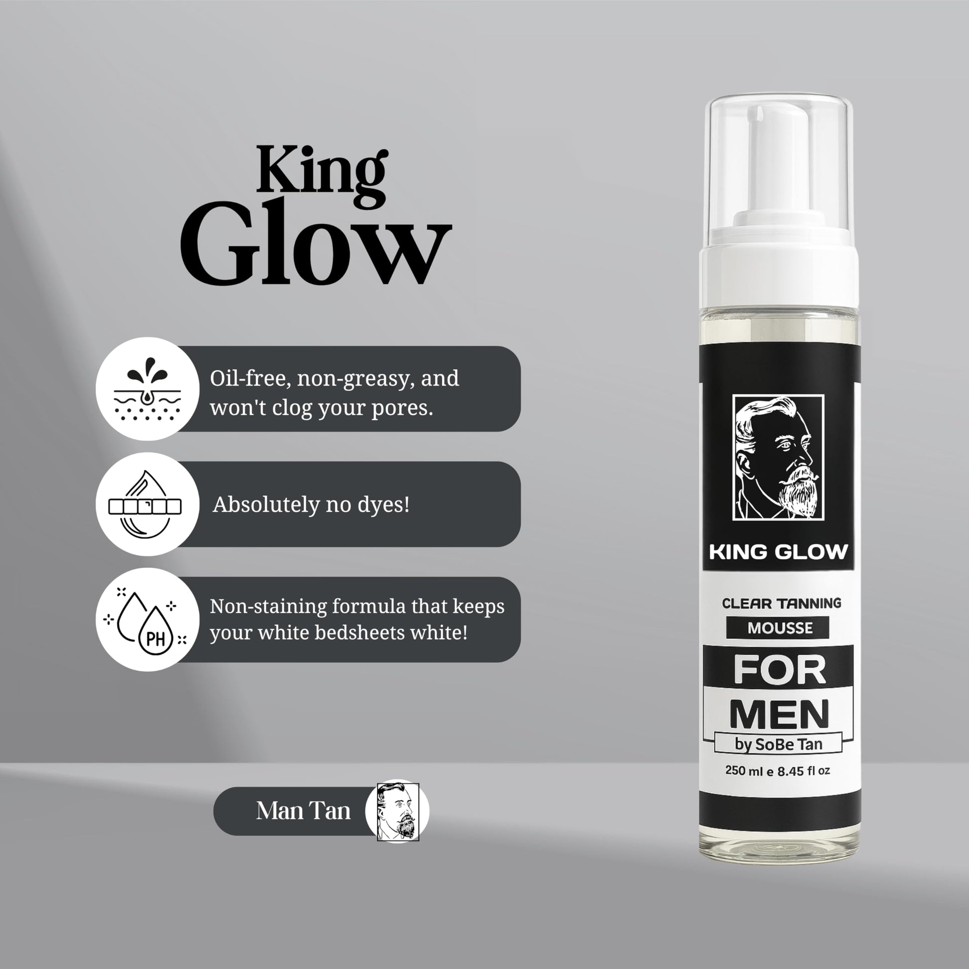 Self-Tanner for Men | King Glow - Water-Based, Fast-Drying Sunless Tanning Foam for Body and Face - Natural Tan Without the Sun (Mitt Included)