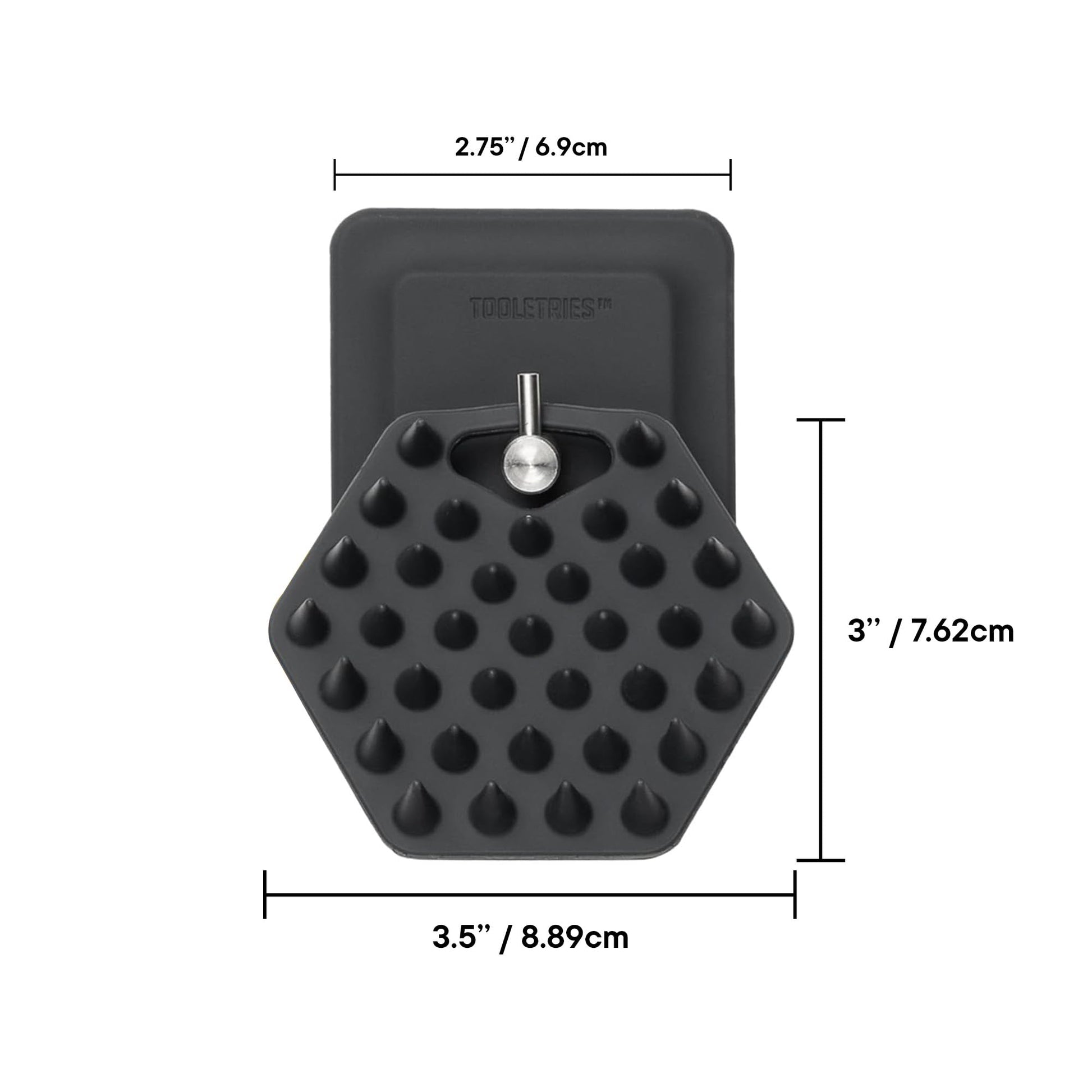 - PRODUCT DIMENSIONS - The bespoke beard scrubber measures in at 3.5" x 3" x 1.7" / 8.9cm x 7.6cm x 4.3cm and the beard scrubber hook is sized at 2.75" x 2.75" / 7cm x 7cm, making it easy to keep in the shower and take with you when you travel