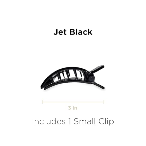 TELETIES - Small Flat Square Clip - For Lying Down, Yoga, Driving & More - Strong Grip, Bendable Teeth, Comfortable Curved Design - Ideal for Thin-Medium Hair - Core Collection - Jet Black