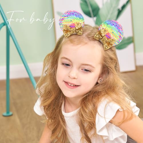 Choicbaby 6 PCS Hair Bow for Gilrs Mouse Ears Sequin Clips Polka Dot Bow with Alligator Clip Mice Ears Hair Bows Barrettes Princess Cosplay Hair Accessories for Baby Girls Toddlers Infant Fine Hair