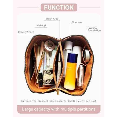 Travel Makeup Bag for Women, Large Capacity Cosmetic Bags for Girls, Compact Pouch Make up Organizer, Waterproof Toiletry Bag with Divider and Handle (Black)