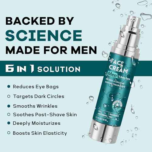6-in-1 Face Cream for Men: Hydrating Water Based Men Face Moisturizer with Retinol, Collagen, Sodium Hyaluronate - Mens Anti Aging Face Cream for Day and Night Use