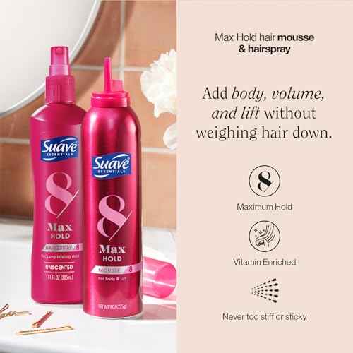 Suave+ Hair Styling Bundle ??Max Hold Unscented Hairspray + Volumizing Mousse, Moisturizing Hair Products Enriched with Vitamins & Proteins (2 Piece Set)