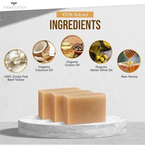 Organic Tallow Soap with Organic Castor Oil & Raw Honey - Relief for Dark Spots, Acne Marks, Hydrating & Nourishing - 3 Pack (Unscented)