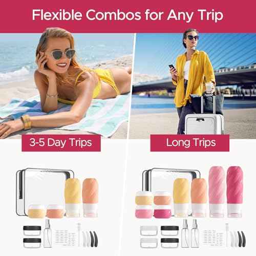 LitBear 23 Pack TSA Approved Travel Bottles for Toiletries, Leak Proof Refillable Travel Size Containers Kit with Silicone Squeezable Bottles Jars for Shampoo Lotion Conditioner, in Clear Bag, Pink