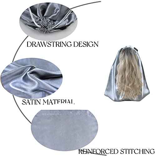 GONGKANGYUAN 12 Pcs Satin Wig Bags with Drawstring Satin Bag for Packaging Hair Extensions Wigs Soft Silk Pouches Hair Tools Storage Bags for Home and Salon (Grey)