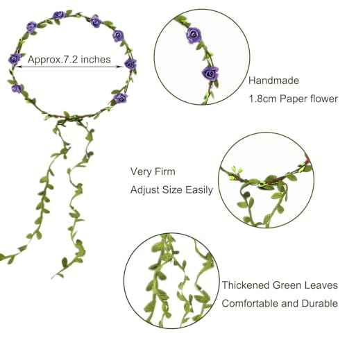 15 Pack Assorted Colored Rose Flower Crown Headband Garland Multicolor Headbands Wreath Floral Bohemian Headpiece for Vacation Fairy Party Wedding Festival