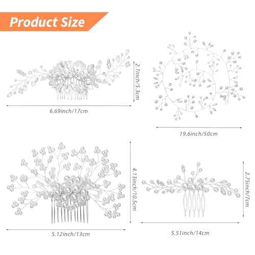 Gingbiss Wedding Hair Accessories Set for Bridal, Silver Pearl Rhinestone Hair Pins Wedding Hair Comb for Brides Bridesmaids Women Girls