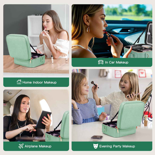 Emdelifo Travel Makeup Bag with LED Mirror, Cosmetic Bags for Women with Light up Mirror, Travel Essentials Makeup Organizer, Makeup Case with Adjustable Dividers and Brush Holder, 3 Color Lights