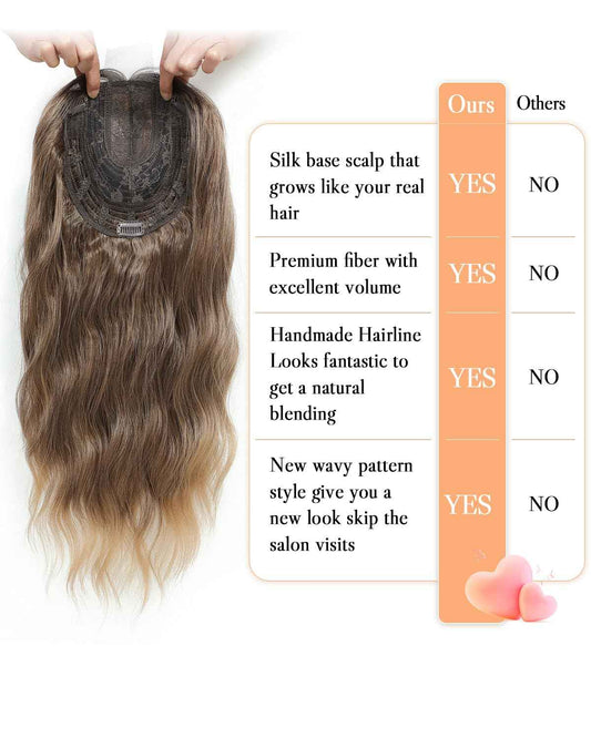 UDU 20Inch Ombre Brown Wavy Hair Topper for Women, Long Hair Topper with Natural Coverage, Clip in Hairpiece for Thinning Hair, Invisible Natural Coverage Top Piece