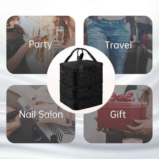FCQQYWZ Large Nail Polish Organizer Case Hold 84+ Bottles Nail Polish & Nail Lamp, 3 Layers Nail Organizers and Storage for Nail Tech with Divider, Travel Carrying Case(Black)