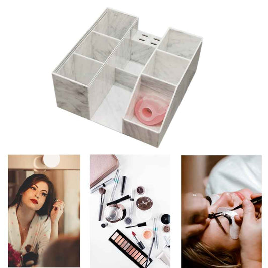Eyelash Beauty Organizer, Acrylic Eyelash Grafting Tool Storage Beauty Tool W/Tweezers Holder Display Boxes for Home Eyelash Salon (Marble White)