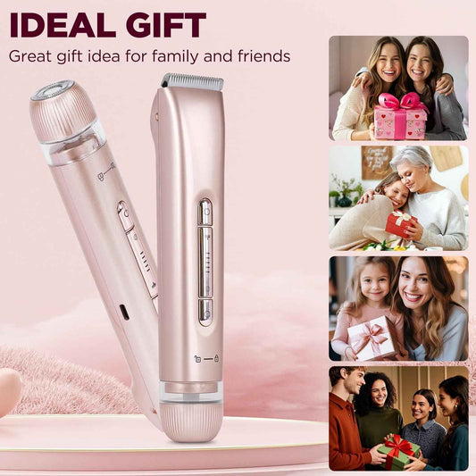 MINYUGUT 2 in 1 Dual Head Bikini Trimmer for Women, Women Electric Shaver IPX7 Waterproof Wet & Dry Use Body Hair Trimmer and Facial Hair Remover Cordless Body Shaver for Bikini Underarm Leg Arm Face