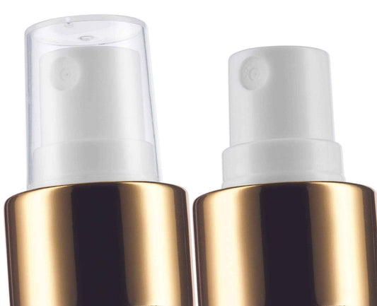 JUVITUS 8 oz Clear Natural Refillable Plastic Squeeze Bottle with Gold Metal Fine Mist Sprayer - (6 Pack)