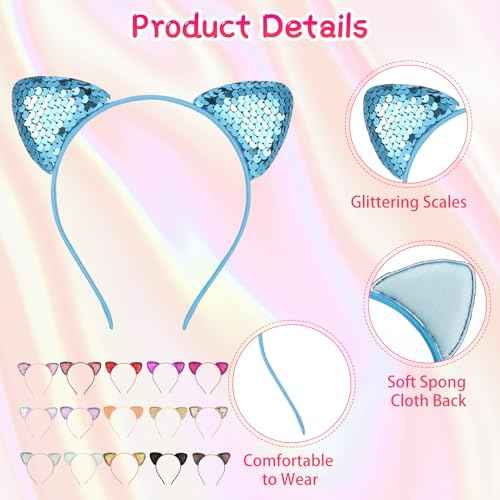25 Pcs Cat Ears Headband Sequin Cat Ear Hairbands Bulk,Glitter Cat Ear Headband Adult Shiny Kitty Hair Hoops Cute Ear Hair Accessories for Birthday Decor, 25 Colors