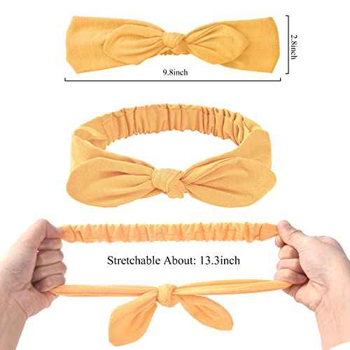 Bow Headbands for Women Solid Color Stretchy Knotted Turban Headbands Rabbit Ears Workout Running Sport Sweat Elastic Hair Wrap for Girls,Pack of 8