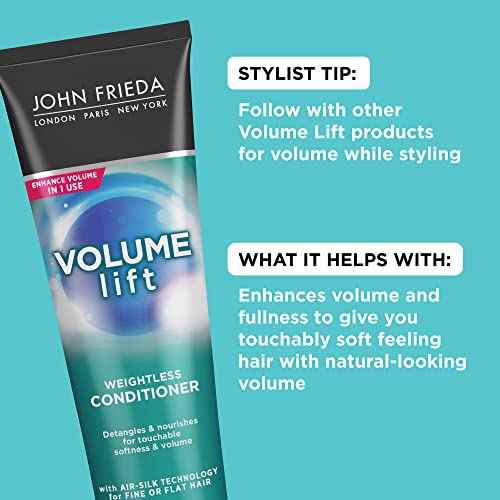 John Frieda Volume Lift Weightless Conditioner, Volumizing Conditioner with Air-Silk Technology for Fine or Flat Hair, Adds Natural Fullness, Safe for Color-Treated Hair, 8.45 Oz, Pack of 2