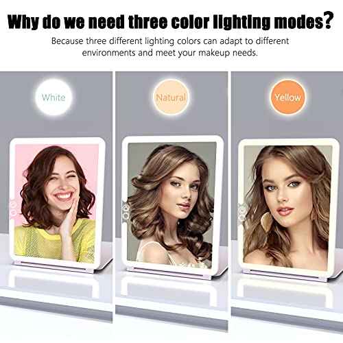 WEILY Makeup Mirror with Lights, 2000 mAh USB Rechargeable Lighted Makeup Mirror, Touch Screen 3 Colors Adjustable 72 LED Lights Compact Travel Mirror, Gift for Girls Women (Pink)