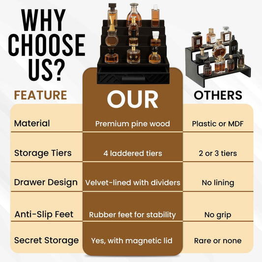 Cologne Organizer for Men - Drawers & Dresser Organizer Countertop - Perfume Holder Stand For Men Organizador De Perfumes - by NovaHavensNest (Black-4 Tier)