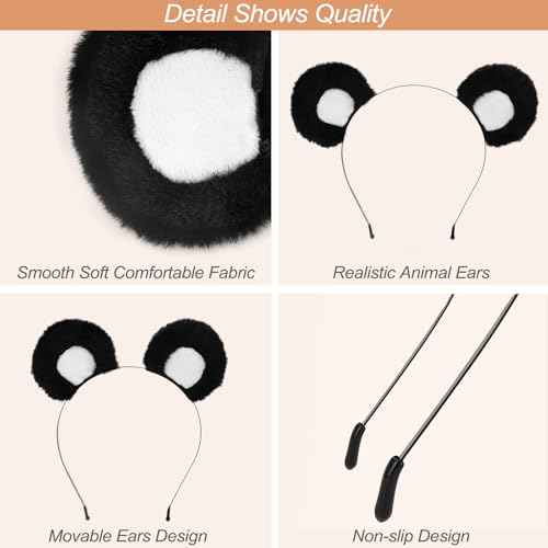 SIOTMERA Bear Ears Headband Black, Cute Care Movable Hairband Adult with Animals Costume, Soft Makeup Head Wear for Washing Face Women