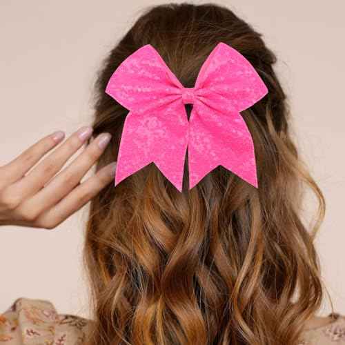 Large Big 7 Inch Glitter Bow Clip Sequin Bling Party Hair Accessories for Women Teens Girls Kids 1 Pcs (Hot Pink2)