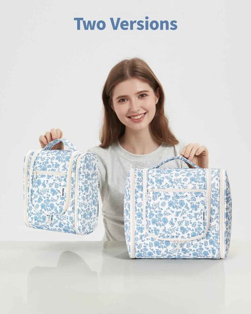 Narwey Hanging Toiletry Bag Women Travel Makeup Bag Organizer Toiletries Bag for Travel Size Essentials Accessories Cosmetics (Medium,Little Blue Flower)