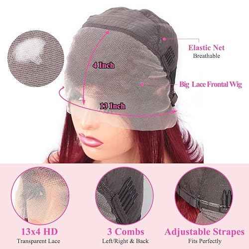 14 Inch 99j Bob Wig Human Hair 13x4 Lace Front Wigs Human Hair For Black Women 180 Density Pre Plucked With Baby Hair
