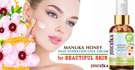 Juiceika MANUKA HONEY Deep Hydration Face Cream Face Moisturizer. Manuka Oil, Aloe Vera, Shea Butter, Coconut Oil, Jojoba Oil, Squalane, Hyaluronic Acid, Avocado Oil 2 Fl. oz. - 60 ml.