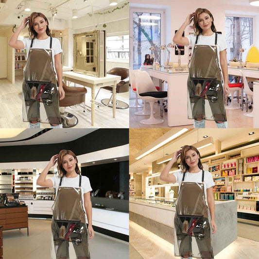 MIKI WELL Hair Stylist Apron for Women - Waterproof Barber Nail Tech Apron Hairdresser Hairstylist Salon Clear Aprons with Large Pocket, Black (22.83”W 29.5”L)