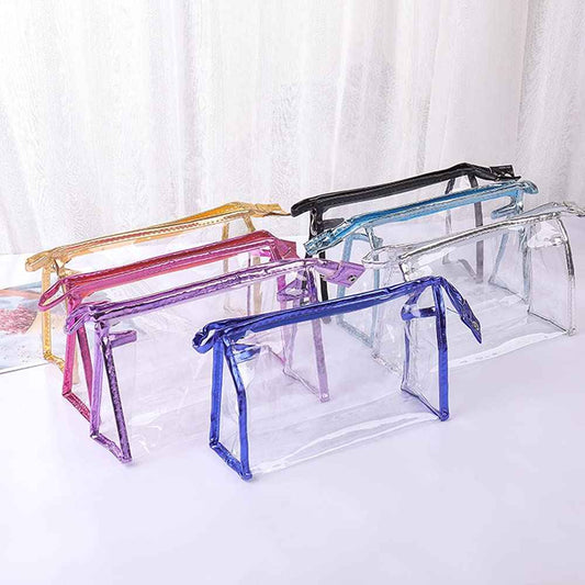SITAKE 12 Pcs Portable Transparent Cosmetic Bags, Clear Waterproof Makeup Bags with Handle, PVC Travel Toiletry Bags Pouches, Clear Pencil Cases, Stationary Organizers(6 Colors)