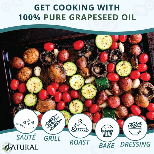 Zatural Grapeseed Oil Naturally Grown 100% Pure Cold Pressed Virgin High Tempurature Cooking Oil (32oz)