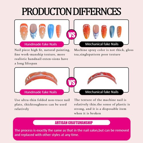 Handmade Press on Nails Medium Almond Fake Nail Unique 3D Floral & Cherry Designs Gold Rose Red Gradient Reusable Flower Stick on Nail Thicked French Tip Acrylic False Nails for Women (M)