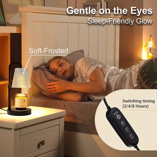 JIMEI Candle Warmer Lamp with Timer Electric Wax Warmer for Scented Wax Melt Warmer Melter for Jar Candles Dimmable Adjustable Height Gifts for Women Mom House Warming Frossted Glass Black