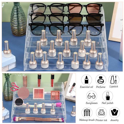 Jetec 2 Pcs Acrylic Card Display Stand Versatile Display for Trading Cards Greeting Card Sunglasses Organizer Nail Polish Holder Essential Oils Cosmetic Cases Eyewear Rack(6 Tiers Style)