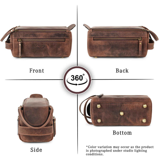 LUXEORIA Premium Handmade Leather Toiletry Bags for Men and Women, Genuine Leather Dopp Kit and Shaving Bag for Men, Travel Cosmetic Bag for Women's and Men's, Zipper Pocket, Chocolate
