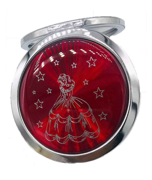 12PCS Quinceanera Compact Round Hand Mirror Sweet 15 design with Organza Gift Bag Girl (Red / Silver)