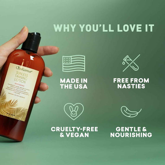 Sunless Tanning Lotion | Anti-Aging Self-Tanner | Body Tanning | Sun Kiss Glow Bronze Finish | Bronzer Lotion For All Skin Types | Just Nutritive | 8 Oz