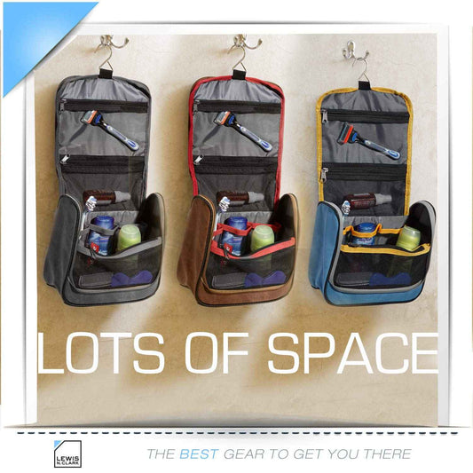 Lewis N. Clark Brushed Twill Hanging Toiletry Kit Bag for Travel Accessories, Shampoo, Cosmetics + Personal Items, Gray