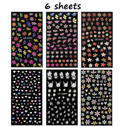 YOSOMMK Nail Art Stickers Decals 5D Embossed Flower Nail Decals Self Adhesive Spring Summer Heart Daisy Nail Supplies 3D Nail Design for Women Nail Decoration Colorful Flower Nail Stickers