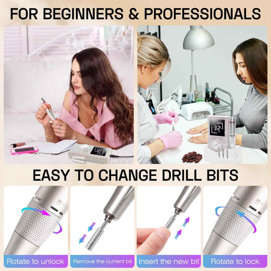 Electric Nail Drill File Machine: Professional 45000RPM Cordless Nail Tool with Stepless Speed Knob for Acrylic Gel Dip Powder Nails, Portable Manicure Pedicure Kit for Home Salon Use