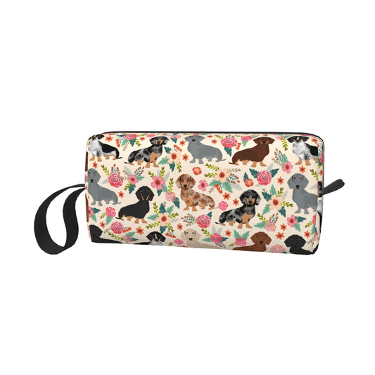 Floral Dachshund Makeup Bag Adorable Travel Cosmetic Toiletry Organizer Case For Women