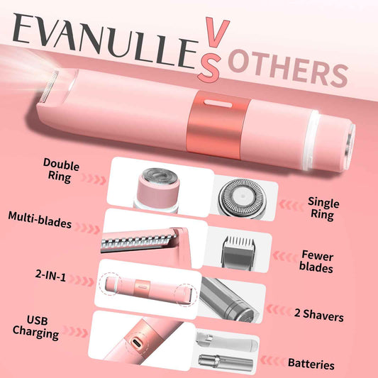 Bikini Trimmer for Women - 2 in 1 Painless Electric Razors for Women, IPX7 Waterproof Rechargeable LED Dual Head Electric Shaver for Lady Bikini Underarm, Body, Leg, Face Hair Remove - Pink