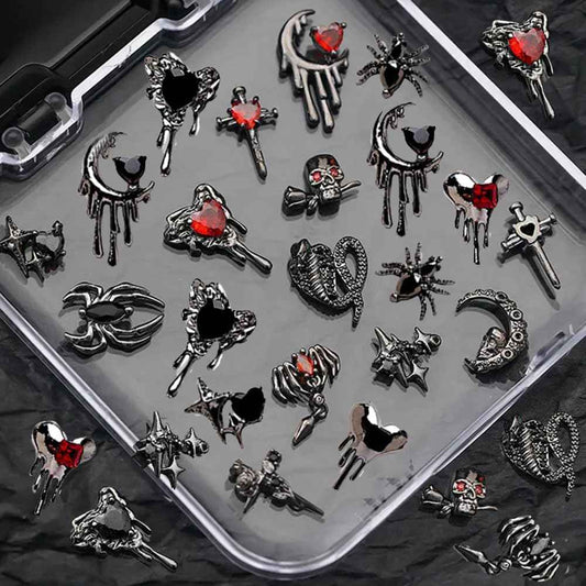 30pcs Halloween Nail Charms for Acrylic Nails 3D Halloween Charms for Nails Cross Nail Charm Star Moon Heart Spider Skull Nail Designs Alloy Nail Art Charms Metal Nail Jewels for Nail Art Supplies