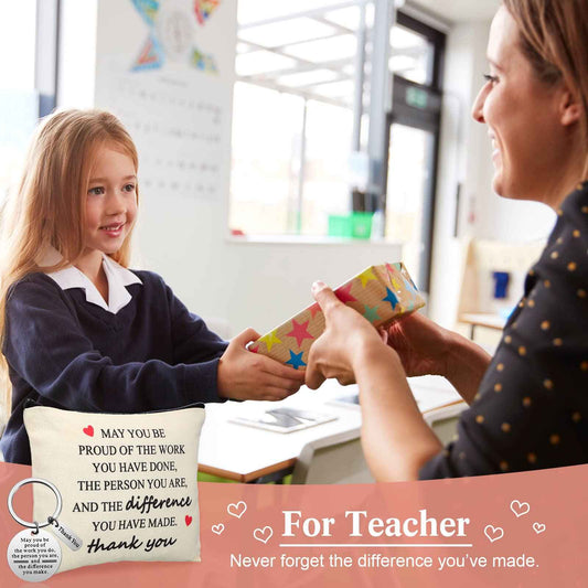 Geosar 16 Pcs Employee Appreciation Gifts Bulk Thank You Gifts for Women with 8 Inspirational Makeup Bags and 8 Thank You Keychains for Nurse Medical Assistant Grandmother Teachers Coworkers Staff