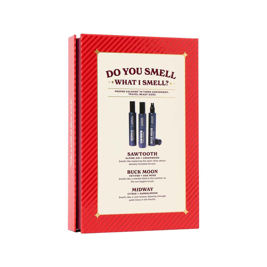 Duke Cannon Merry Little Sniffmas Giftset - travel-sized trio of Duke Cannon Proper Cologne® - Holiday Cologne Gift Set - eau de parfum - Sawtooth, Buck Moon, Midway